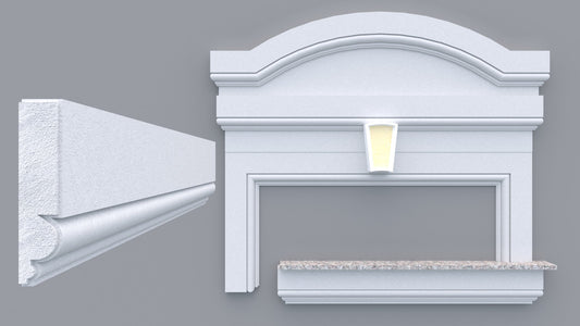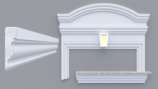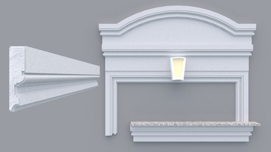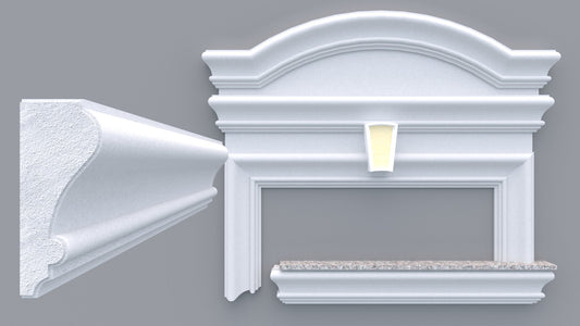 Profil decorativ din polistiren pentru geamuri si usi TRIMINNO-A0006, folosit ca si ancadrament,solbanc sau cornisa de dimensiuni 55x120x2000