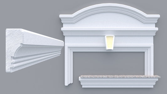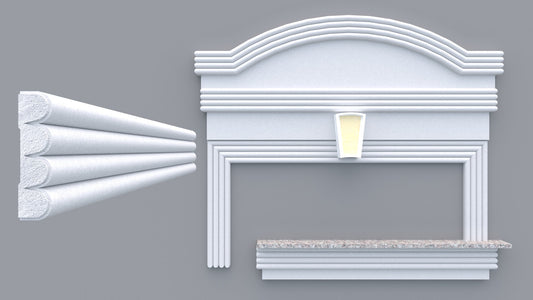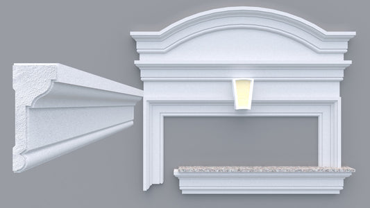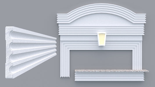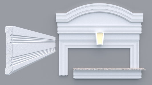 Profil decorativ din polistiren pentru geamuri si usi TRIMINNO-A0013, folosit ca si ancadrament,solbanc sau cornisa de dimensiuni 53x130x2000