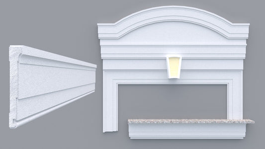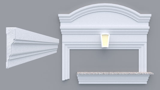 Profil decorativ din polistiren pentru geamuri si usi TRIMINNO-A0016, folosit ca si ancadrament,solbanc sau cornisa de dimensiuni 60x147x2000