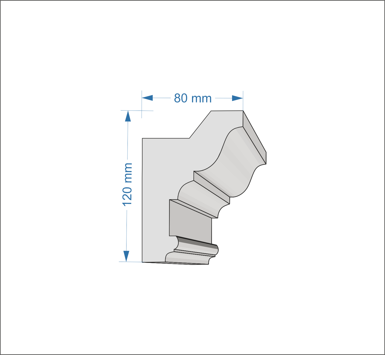 Profil Decorativ din Polistiren pentru Tavane de Interior CIL0008, folosit ca si cornisa pentru Bandă LED de dimensiuni 80x120x2000