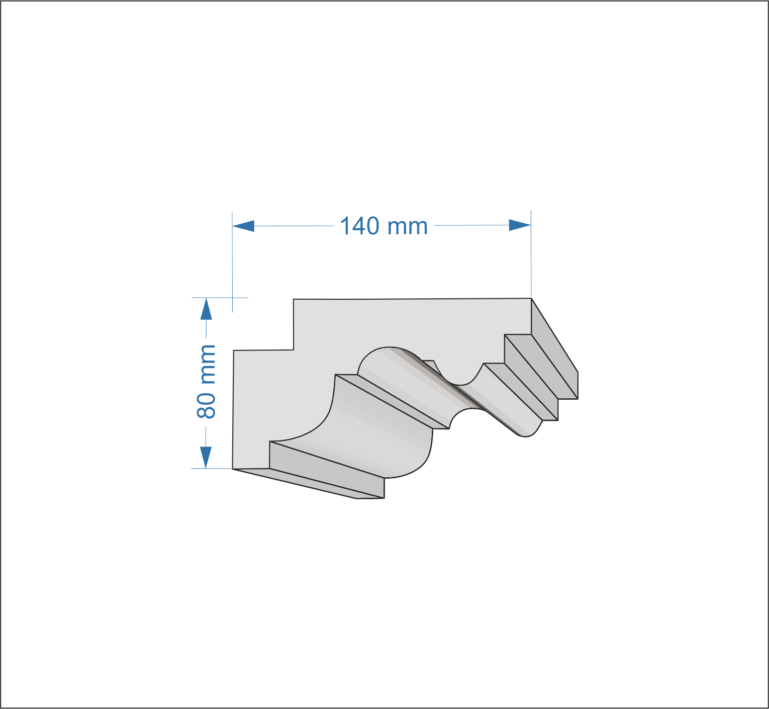 Profil Decorativ din Polistiren pentru Tavane de Interior CIL0014, folosit ca si cornisa pentru Bandă LED de dimensiuni 140x80x2000