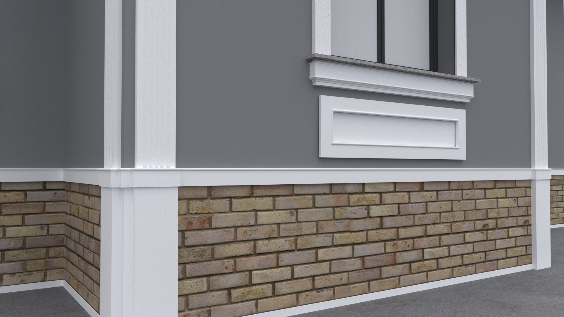 Bază Elegantă a Casei : Folosiți brâul pentru a adăuga o notă de rafinament de-a lungul întregii fațade, oferind o linie de bază distinctă, creând o tranziție fluidă și estetică între fasadă și baza casei.